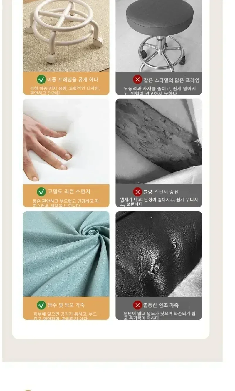 • Material duradero:Fabricado con cuero sintético, este taburete está diseñado para durar y puede soportar el uso diario.