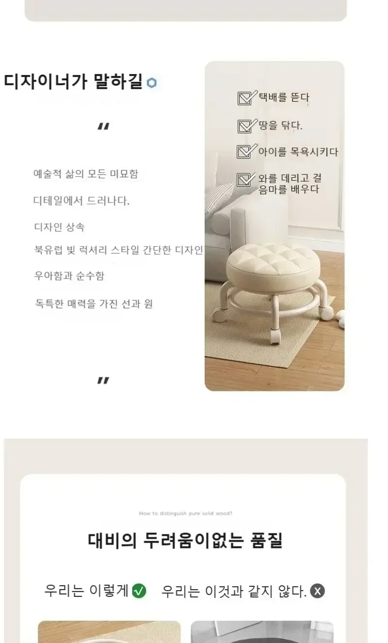 Taburete de polea, taburete pequeño de celebridad de Internet, asiento silencioso con ruedas, silla para cambiar znurete redondo